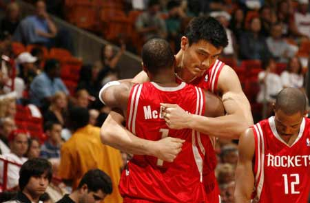 麦迪之所以能够得到这么多中国球迷的关注,还真的应该感谢好兄弟姚明,姚明也一直都非常肯定自己的好兄弟实力。在自己球衣退役的仪式上面,姚明感谢的宣言,有一句,“如果比赛还剩35秒,我会把球交给麦迪。”这一句话,引起了全场美国观众的大笑,姚明的幽默真的强。从侧面来看,麦迪在火箭队的所有荣誉,似乎就是姚明所说的35秒13分,在火箭队时期的伤病让麦迪的地位和成就很尴尬。