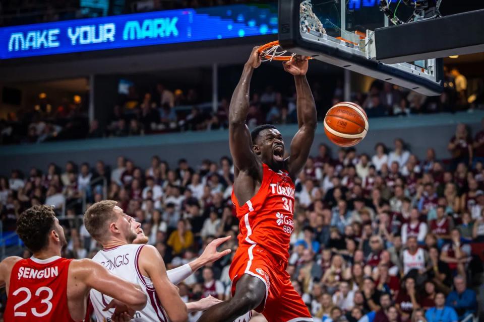 本场比赛中,土耳其队的替补内线新星阿德姆-博纳(Adem Bona)还是展现出了不错的个人能力的。博纳全场出场13分35秒,投篮1中1,罚球4中2,得到了4分4篮板3盖帽的数据,还有1次犯规,正负值为+1。博纳的出场时间和出手次数都比较有限,他也确实是很难在进攻端发挥出更大的作用,他也没有办法得到更多的分数,这也是一件情理之中的事情。不过博纳在防守端的表现绝对算得上是令人刮目相看,他也是将自己在身体天赋和运动能力方面的优势充分发挥了出来,他能够利用自己在这方面的特点进行护筐,他在防守端也是取得了相当不错的效果。能够在出场时间不多的情况下打出这样的表现,其实并不是一件容易的事情。