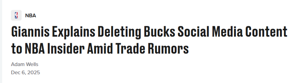 北京时间12月7日,尽管本周外界高度关注字母哥在社交媒体上移除了大量与雄鹿相关的内容,但此举并不一定意味着他在为潜在的交易埋下伏笔。