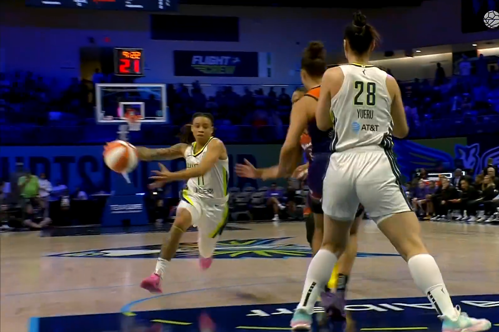首节,李月汝面对包夹失误丢球,李月汝挡拆帮助后卫连续取分,佩奇命中三分打出9比2的良好开局。德州今年WNBA和NBA两大状元在手,有望起飞。李月汝篮下进攻制造犯规,李月汝继续上罚球线,奎娜丽三分命中,建立两位数领先优势。詹姆斯三分继续命中,首节飞翼队32比20领先。佩奇得到最高分8分,李月汝出场6分钟利用罚球得到4分3篮板。
