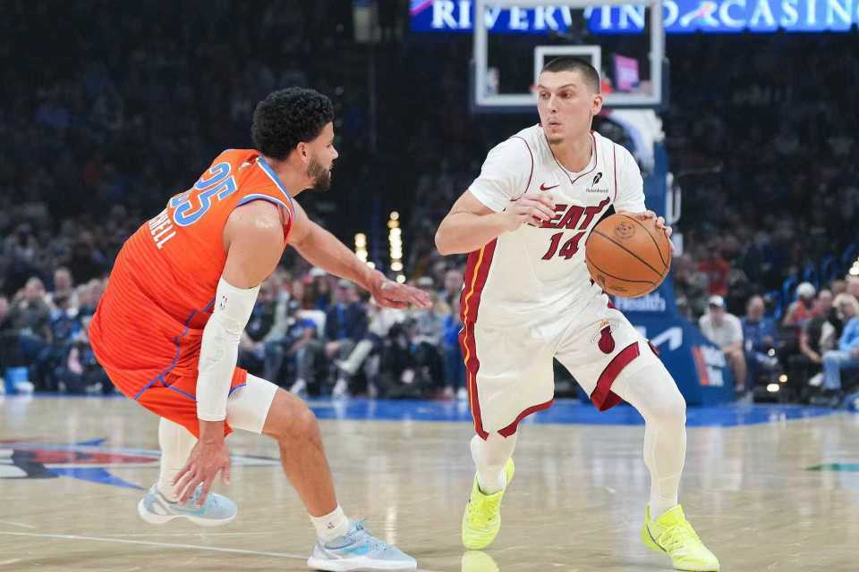 北京时间1月12日,NBA常规赛卫冕冠军雷霆主场对阵热火,其中热火是背靠背第二场。雷霆在一度落后9分情况下,凭借后两节的出色表现反超20+优势,最终雷霆124-112逆转战胜热火收获3连胜。雷霆前40场33胜7负稳居联盟第一,热火遭遇3连败,雷霆取得对热火交锋5连胜。